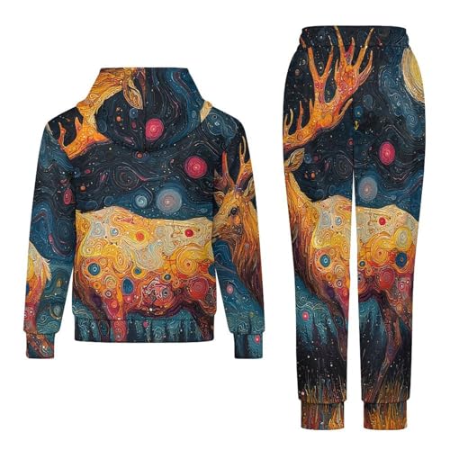 Boys Girls Hoodie Pants Hooded Sweatshirt Sweatpant 2 Piece Clothing Set, Elk Psychedelic Abstract 1