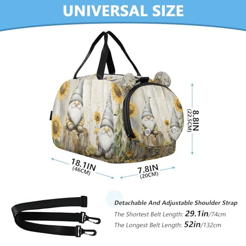 More information about Duffle Bag for Boys or Girls with Shoes Compartment, Sunflower Gnome Sports Travel Bag Overnight