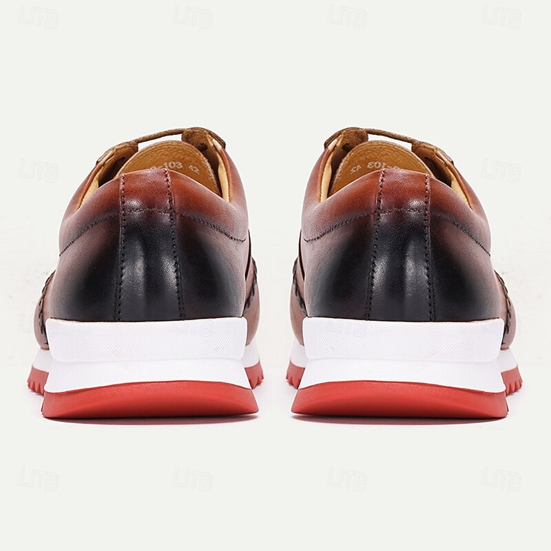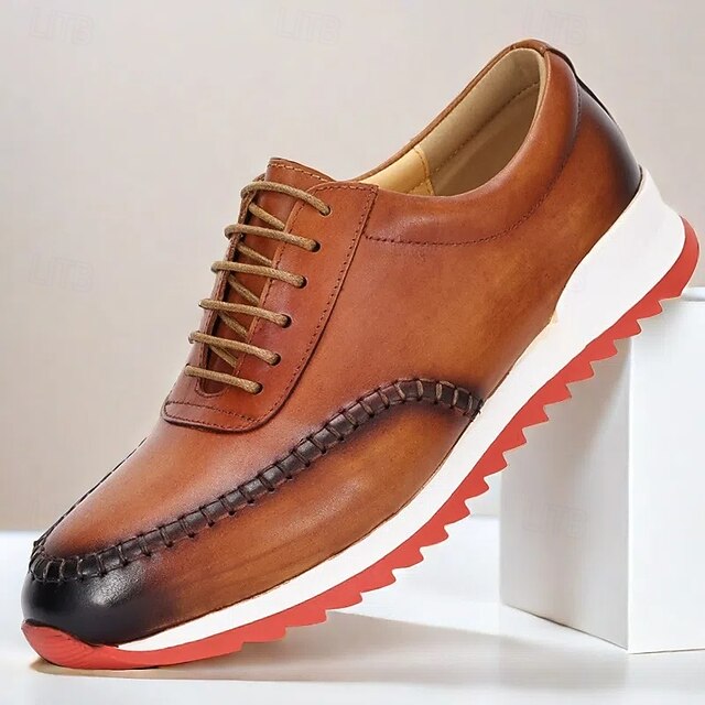 Men's Handmade Genuine Leather Oxford Sneakers – Vintage Lace-Up Casual Dress Shoes with Hand-Stitched Detailing for Business & Everyday Wear 1