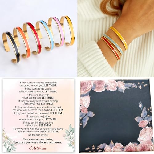 • 【Ideal Gift Choice】: Looking for a unique gift for her? Our cuff bracelets for women feature an inspiring message inside, such as "Let Them," to motivate and uplift you. Sent in a gift box and comes with a inspirational message card. Great as yoga gifts or get-well gifts for women.
