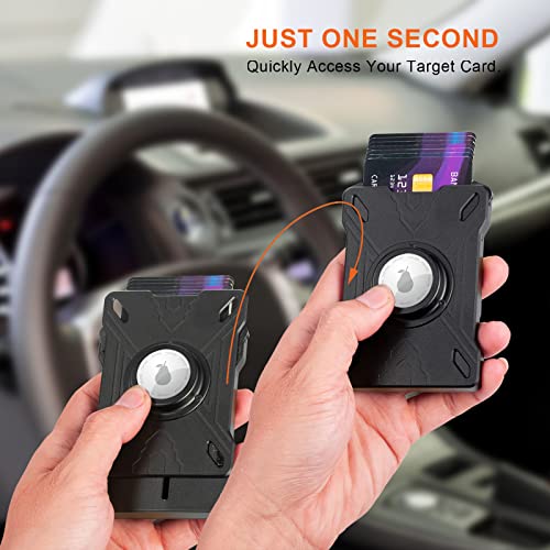 Wallet for Men with Airtag Holder, Smart Pop Up Mechanism, Men's Minimalist Air tag Wallet with Expandable Metal Backplate&Strap Money Clip, Slim RFID Blocking Aluminum Credit Card Holder 4