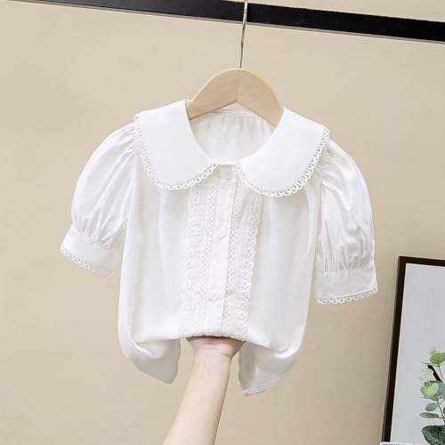 • ELEGANT DESIGN: Classic white blouse featuring a delicate Peter Pan collar with beautiful lace trim detailing and feminine short puff sleeves