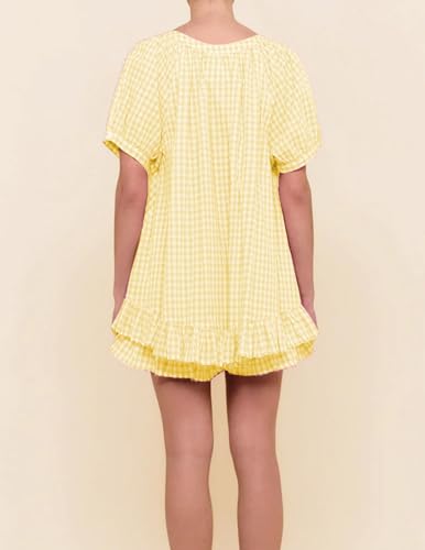 Womens Gingham Pajama Set 2 Piece Cotton Short Sleeve Plaid Ruffle Pjs Outfits Lounge Babydoll Shirt Sleepwear 5