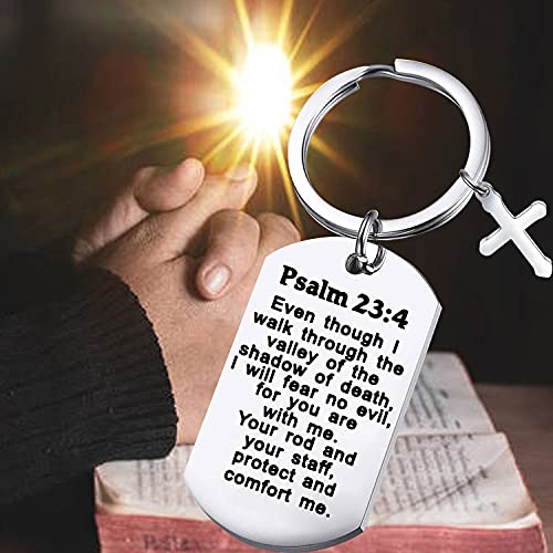 FUSTMW Psalm 23:4 Bible Verse Dog Tag Keyring/Necklace Christian Jewelry Religious Inspirational Gift 4