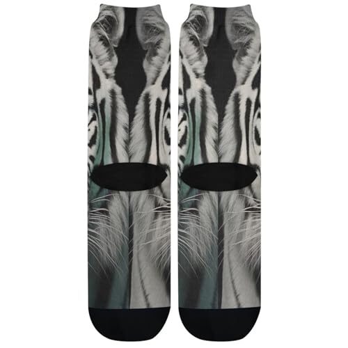 1 Pair White Tiger Crew Socks Breathable Compression Athletic Socks for Women Men Sport Running Cycling 4