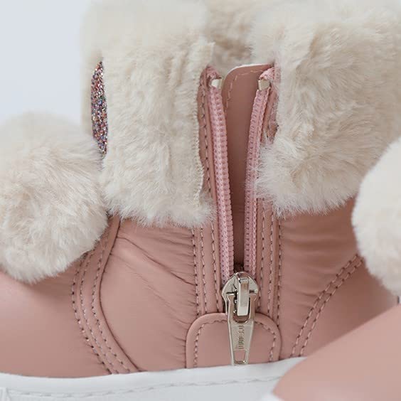• DETAILS: Side zipper for easy to put on and take off the boots. Cute bunny ears and pom pom details.