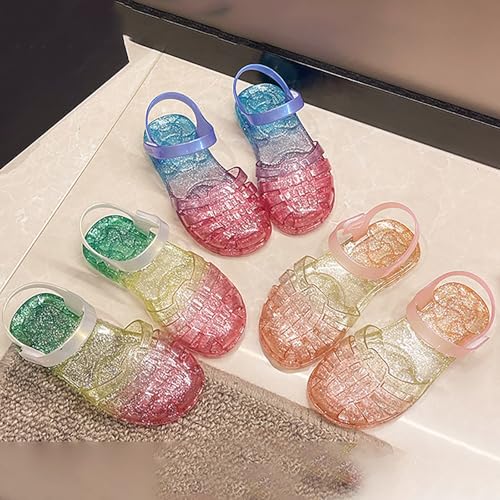 Girls Princess Jelly Sandals Toddler Kids Summer Rainbow Glitter Sparkly Party Mary Jane Shoes Colorful Flat Sandal 4