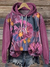 More information about Women's Pullover Hoodie Sweatshirt Graphic Cat Warm Vintage Fashion Long Sleeve Hooded Regular Tops Street Dailywear Casual Patchwork Print Red Purple Spring Fall Winter