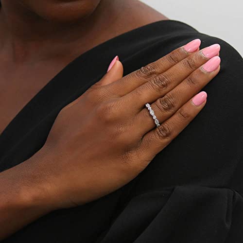 • Timeless Design: This milgrain art deco half eternity ring showcases a stunning motif of alternating shapes, adding vintage allure to your look. Set with premium grade 0.17 ct.tw round cubic zirconia CZ (1.75mm - 1.5mm) in crown and prong setting.