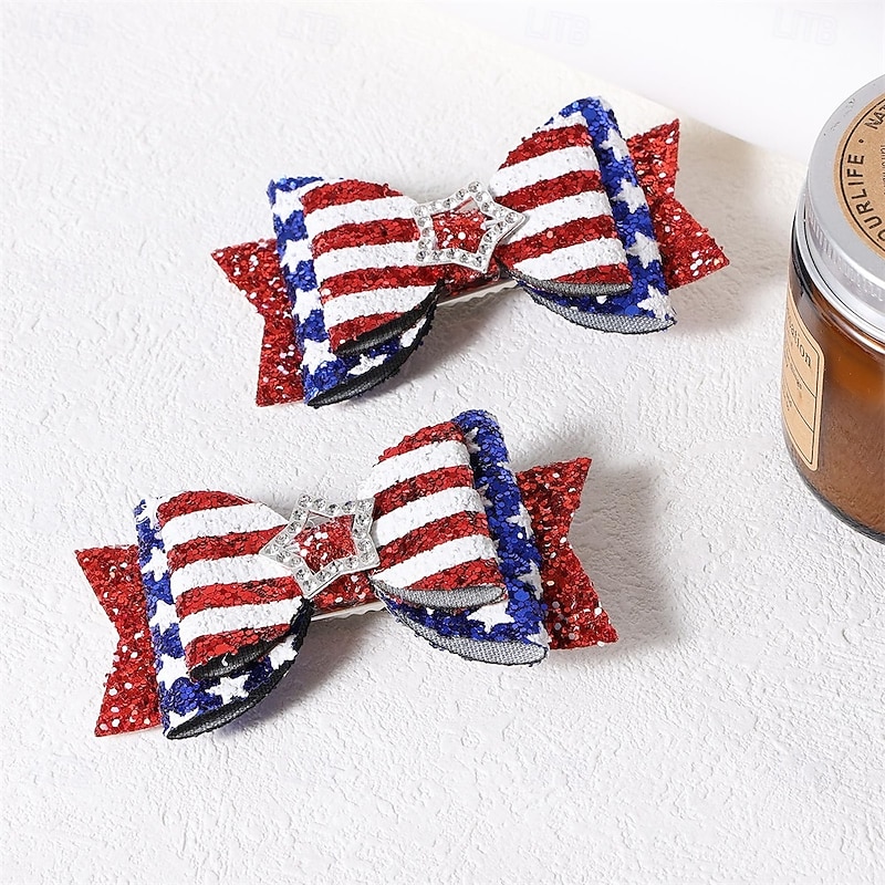 $5.49 - Independence Day Hair Clips 4th of July Glitter Hair Bow Clips Patriotic American Flag Hair Accessories with Star for Kids Girls 2025. Shop for cheap Hair Styling Accessories online? Buy at lightinthebox.com on sale today!