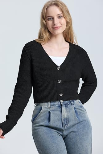 • Features: The crop cardigan for women features with long sleeve, a little sexy v neckline, freezy heart buttons, open front cardigan for women, button down sweaters for women, cropped length, ribbed in cuff and hemline make this short cardigan hug you well in cold weather, y2k clothes, chic yet trendy.