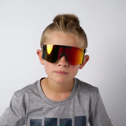 Care instructions: Clean with a tender cloth. Store in a protective case when not in use.Origin: Made in the USAFOR KIDS 3-8 YEARS OLD: Our best selling adult retro sunglasses in a kids version. For ages 3-8 years old. The same styles as the original that your dad wearsNO SLIP FIT: Designed with no slip grip rubberized touch points. These glasses are made to stay on through the playgrounds, courts and sports. Sunglasses come with 1 Tie Downs Retainer Strap and 1 LimpclothUV PROTECTION LENS: Polycarbonate eyewear. Engineered to withstand the toughest bumps of life. These lenses enable you to see your best and live life fastLIGHT TRANSMISSION: CAT 3. Lens cuts glare and reduces eyestrain. Cat 3 blocks 82% to 92% of light, making them ideally for bright sunlight conditions.THE JUNIOR: Demand respect & authority from the playground to the unchaperoned mall hang in The Junior. The same premium lens, no slip grip, and indestructibility as the original Pit Viper, now for kids, tweens, and teens with smaller faces Perfect for everyday use. superior materials and excellent craftsmanship ensure long-lasting durability.