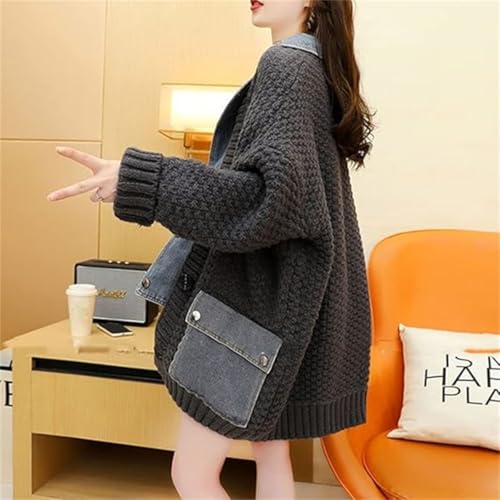 Fabric type: Polyester,CottonCare instructions: Machine WashOrigin: ImportedClosure type: Pull OnMaterial Quality:Fashion lapel crafted cardigan from high-quality denim and knit fabric blend,cardigan is soft,durable and breathable,while keeping you warm during the cold winter monthsStyle Design:Classic warm oversized loose tailoring is very inclusive and can adapt to different body types.Unique splicing contrast color design can add layering to clothes,making them more stereoscopic and richPocket Functionality:Retro denim sweater coat comes with practical pockets that are perfect for storing your small essentials like keys,phone or lip balm,always have your necessities close at handRib Design:Winter open front jacket ribbed cuffs and hem certain elasticity,can move freely without being restricted by clothes.Ribbed cuffs close to the wrist,effectively blocking the invasion of cold windVersatility:Women loose sweaters cardigan easily pairs with various outfits,from leggings and boots for a casual day out to dresses for a more sleek and sophisticated look,allowing you to show your unique charm Perfect for everyday use. superior materials and excellent craftsmanship ensure long-lasting durability.