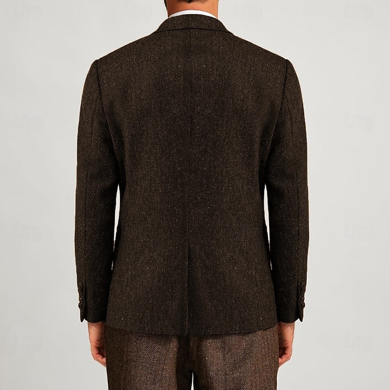 More information about Men's Tweed Blazer Notch Collar Retro Vintage Herringbone Blazer Black Brown Dark Blue Plus Size Single Breasted Two-buttons