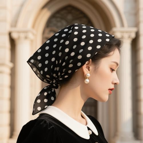 Polka Dot Scarf 1950s Chiffon Scarf Retro Hair Tie Sheer Square Neckerchief for Women