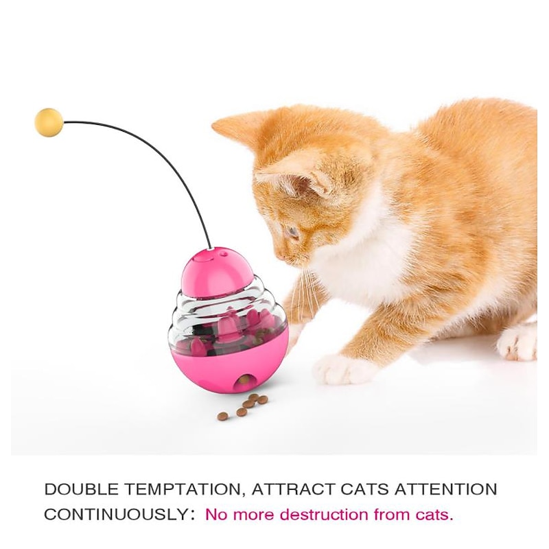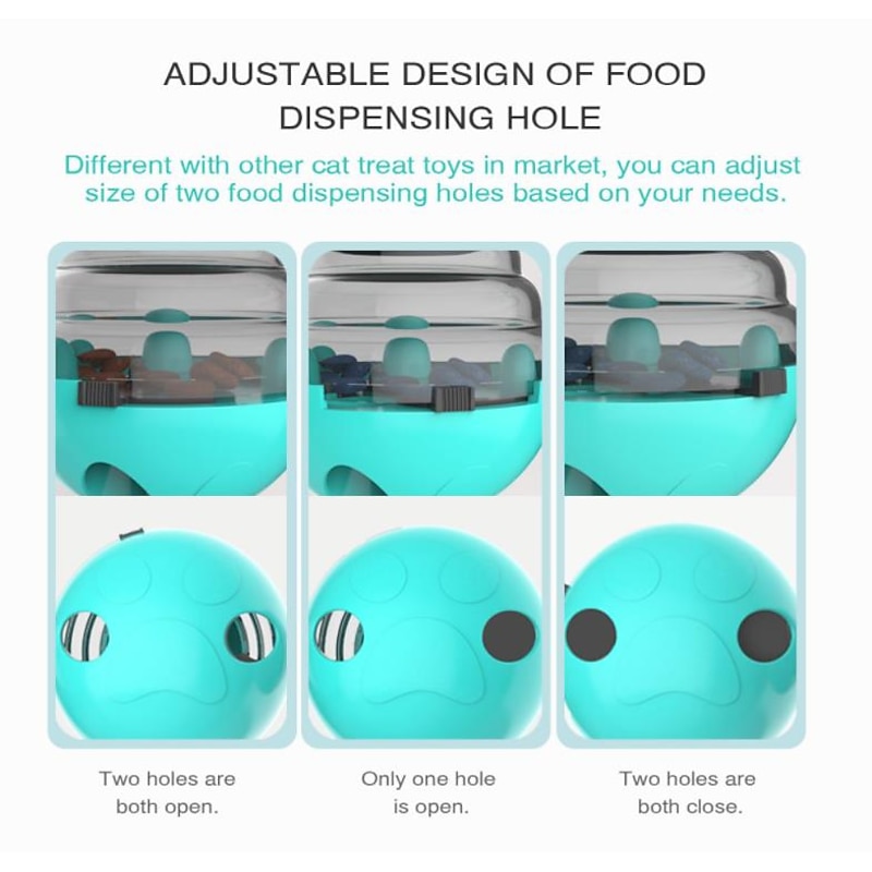 Highlights ✅ The wobbly tumbler will dispense a treat as your cat plays with the ball. This toy will hold your cat's attention. ✅ You can adjust the amount of treat dispensed. ✅ Not electric, no batteries needed. ✅ This product is made of ABS, PC and other healthy plastic, tasteless, healthy, anti-wear, anti-bite and durable. ✅ Suitable for cats of any age.