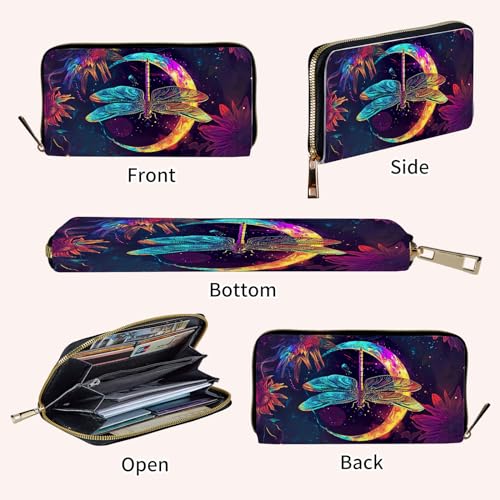 Ladies Wallet,Clutch Purses for Women Wallets Leather Credit Card Holder for Women Wristlet Slim Small Cute with Zipper,Thin RFID Blocking with Wrist Strap,Glitter Dragonfly Moon 5