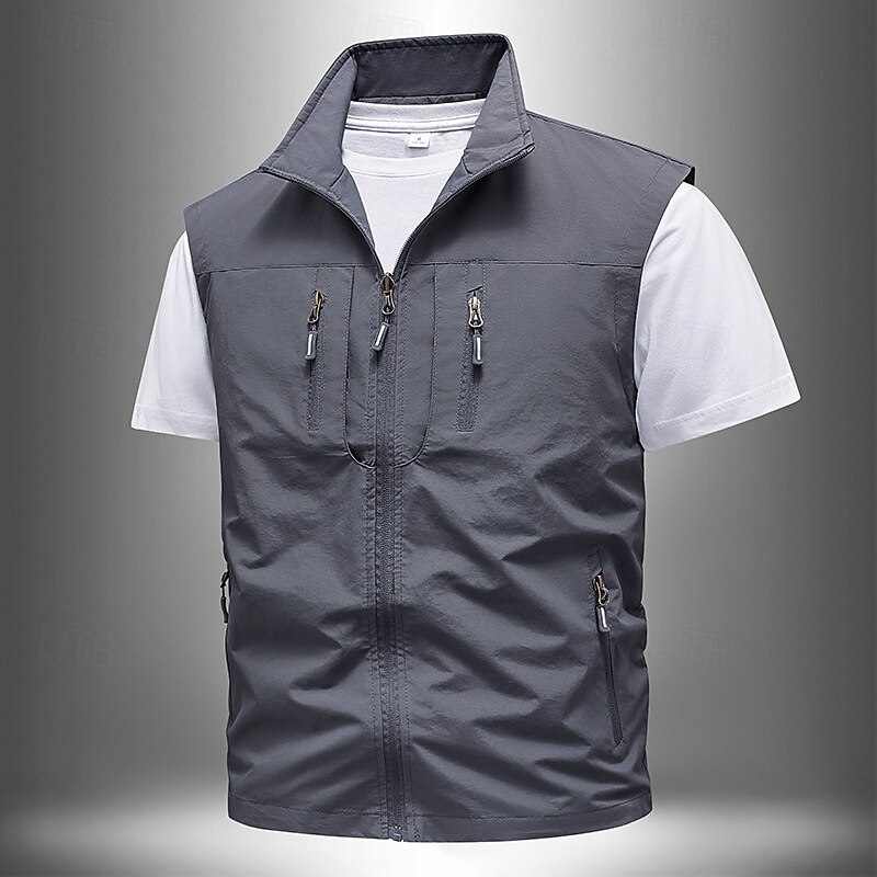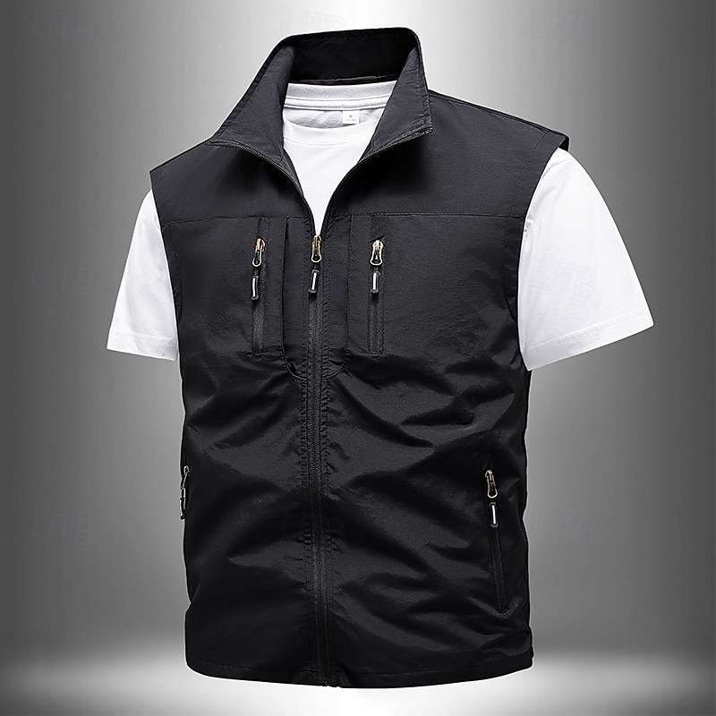 More information about Men's Vest Gilet Outdoor Daily Fashion Casual Spring Fall Pocket Polyester Comfortable Plain Zipper Stand Collar Regular Fit Black Khaki Army Green Dark Blue Vest