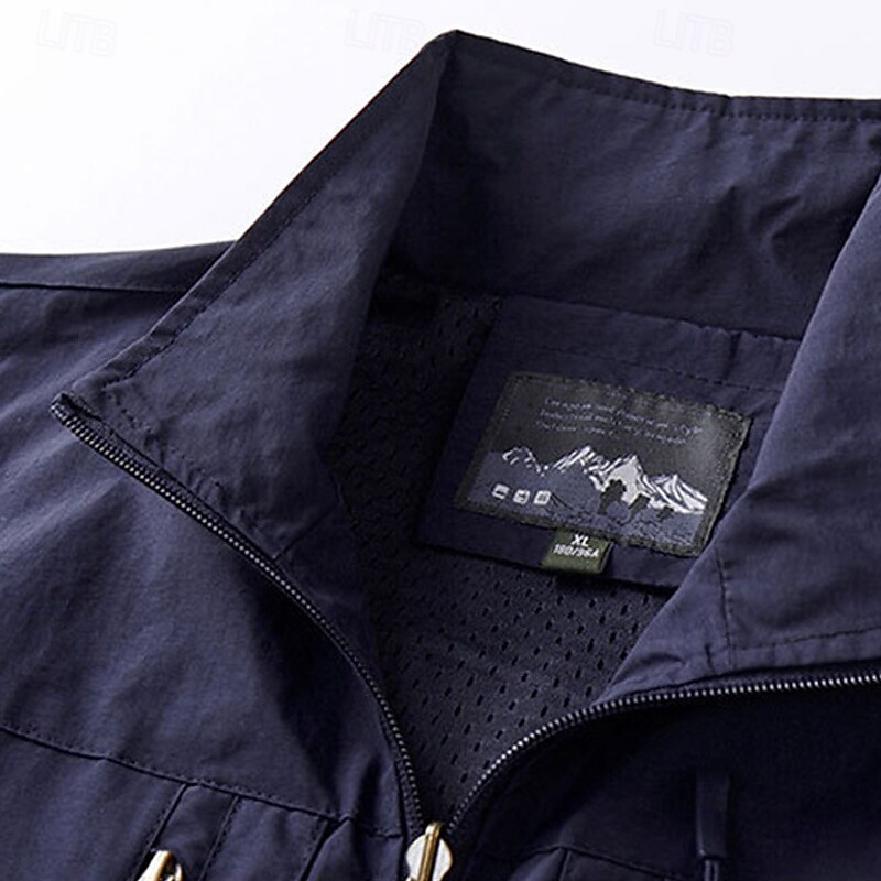 Men's Vest Gilet Outdoor Daily Fashion Casual Spring Fall Pocket Polyester Comfortable Plain Zipper Stand Collar Regular Fit Black Khaki Army Green Dark Blue Vest 14