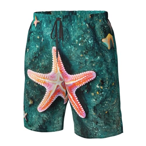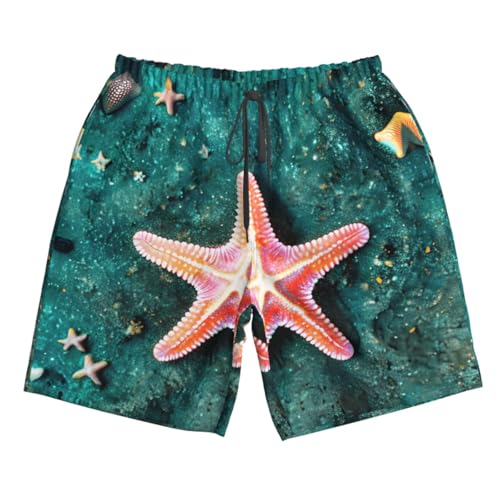 More information about Seawater Seashell Starfish Print Mens Casual Shorts Drawstring Summer Beach Stretch Shorts Novelty Swimtrunks