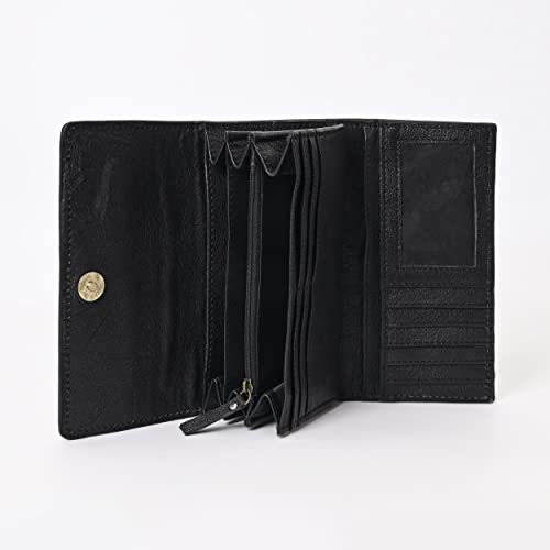 Hantooled Leather Wallet RFID Blocking, Trifold Ladies Purse, Flower Handtooled and Carved long Clutch, 1 Back Zip pocket, Wallet For Women (Light brown)