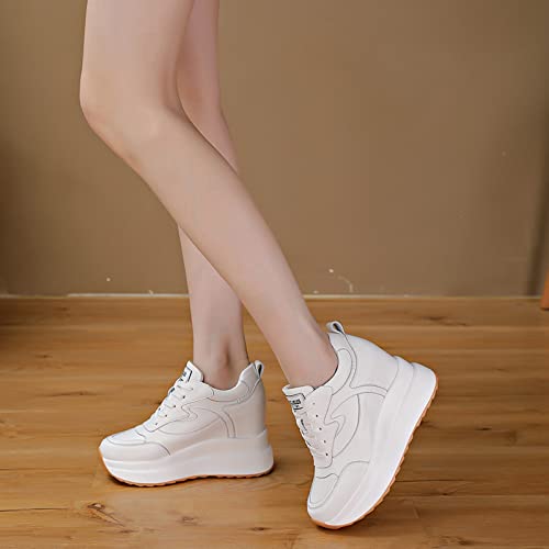 Platform Sneakers for Women - High Hidden Heel Wedge Fashion Leather Chunky Lace up Wedge Tennis Shoes Increasing 3.94 inch 3