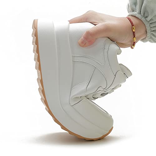 Platform Sneakers for Women - High Hidden Heel Wedge Fashion Leather Chunky Lace up Wedge Tennis Shoes Increasing 3.94 inch 6