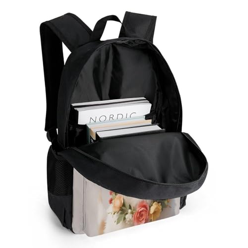 • Backpack Structure: Big capacity main pocket + two side pockets; The main pocket is very practical for your laptop, books, stationary, lunch box, book, wallet, keys, phone, and camera; Two side pockets can hold water bottles and umbrellas