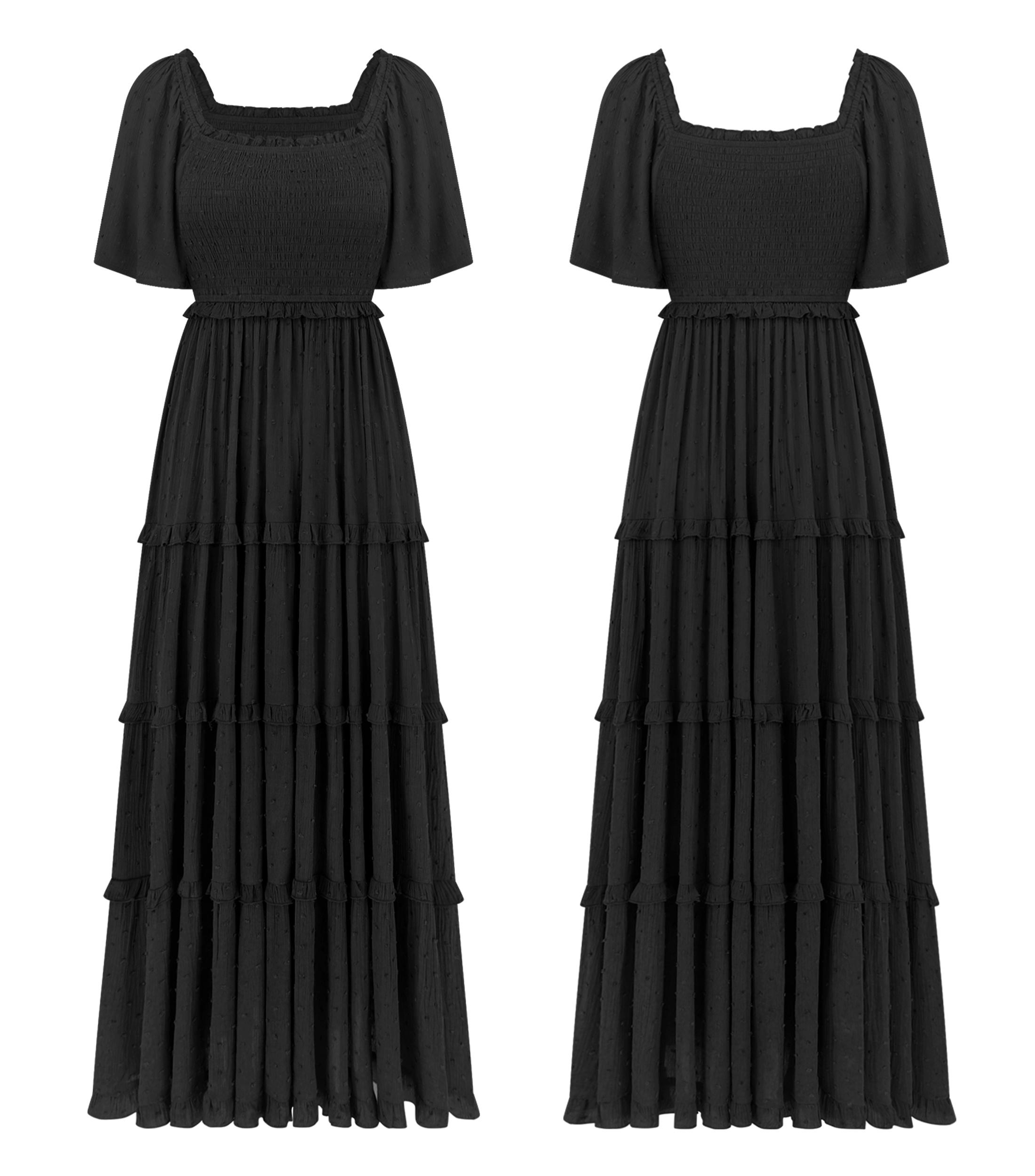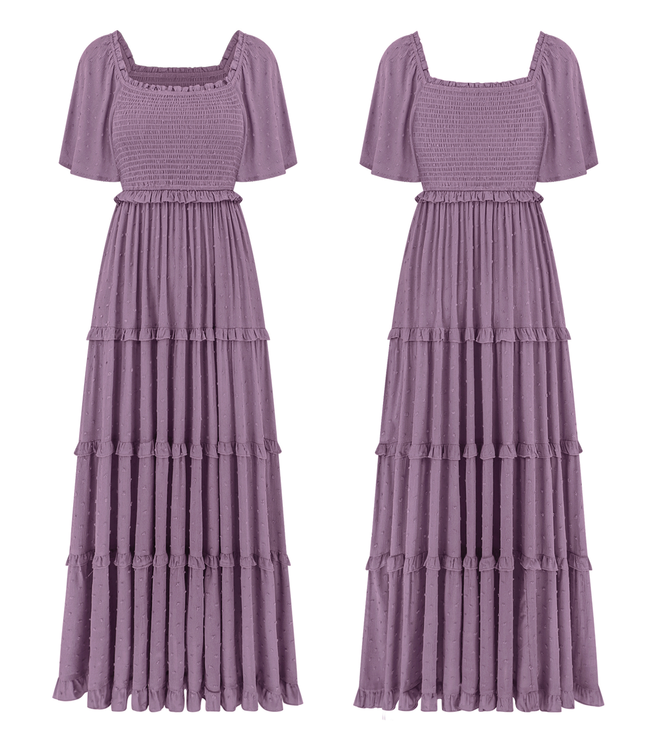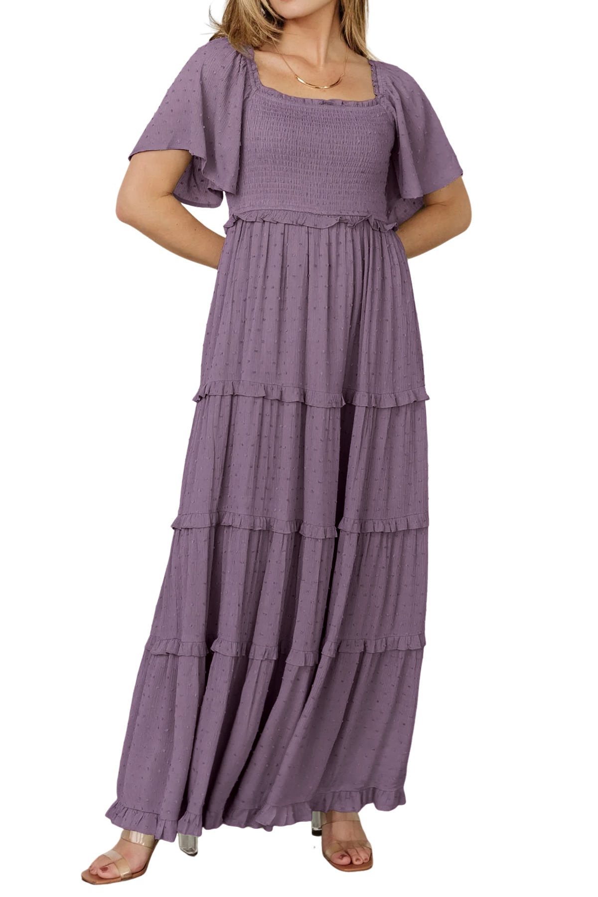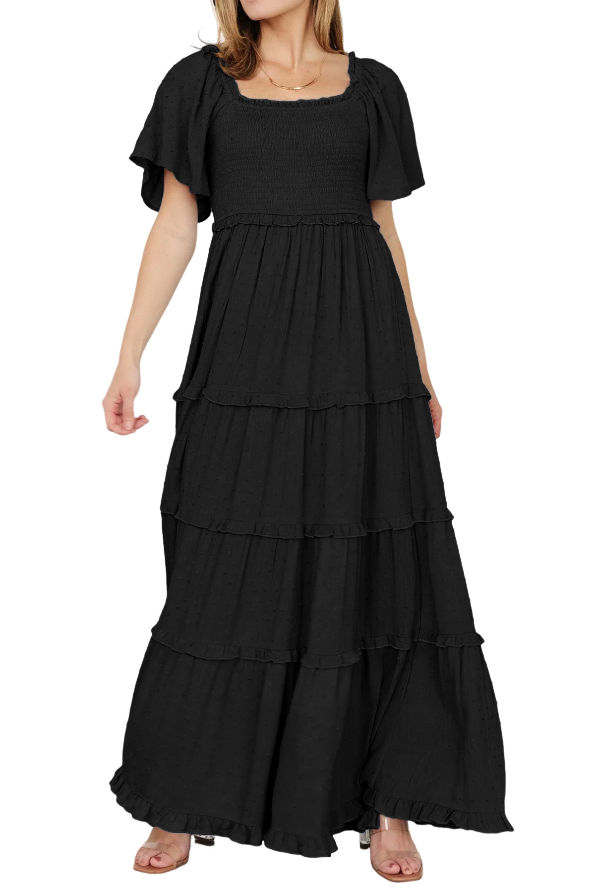 Why Choose R.Vivimos Womens Summer 2025 Maxi Dress Short Sleeve Square Neck Elastic Smocked Swiss Dots Casual A-Line Flowy Long Dresses?