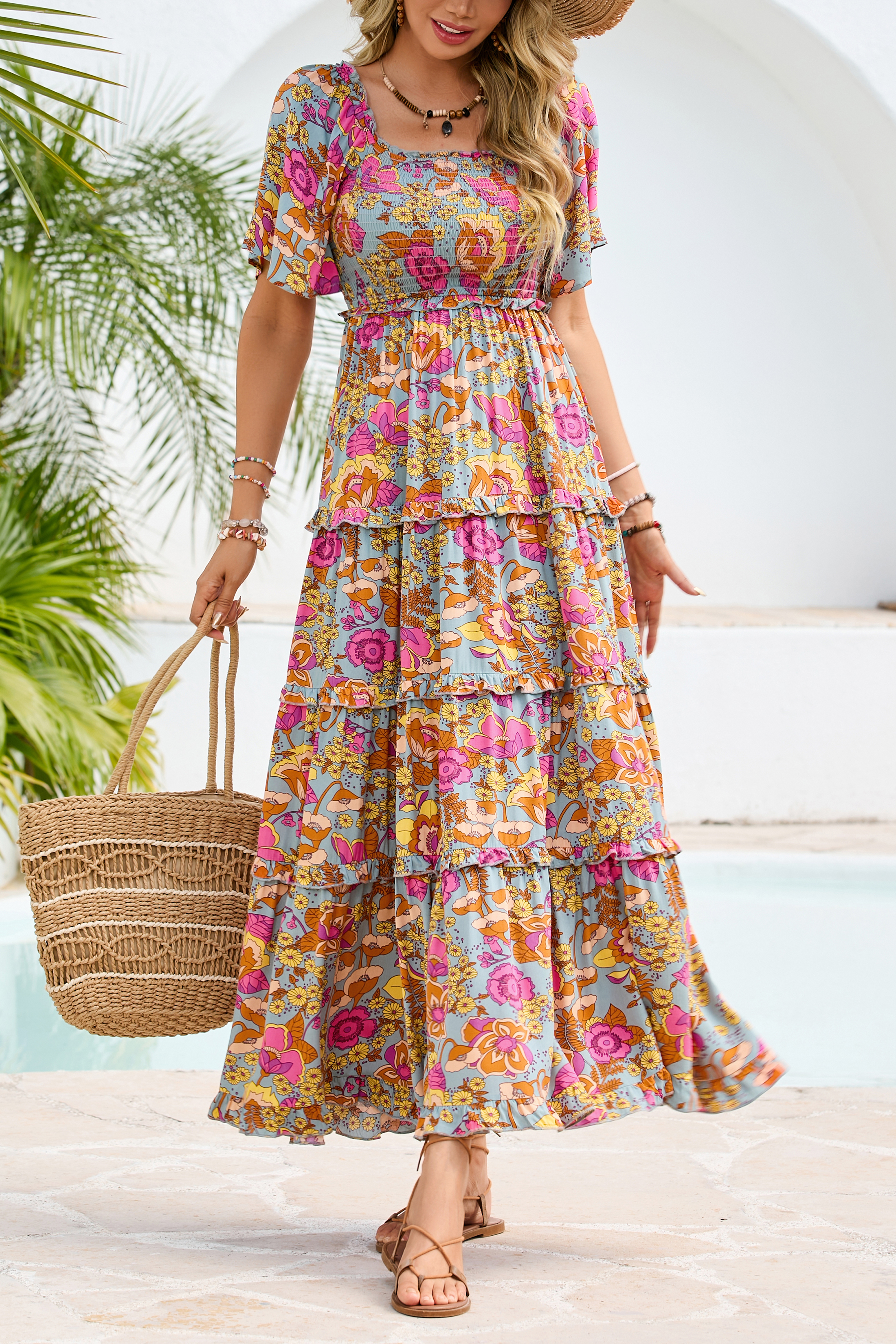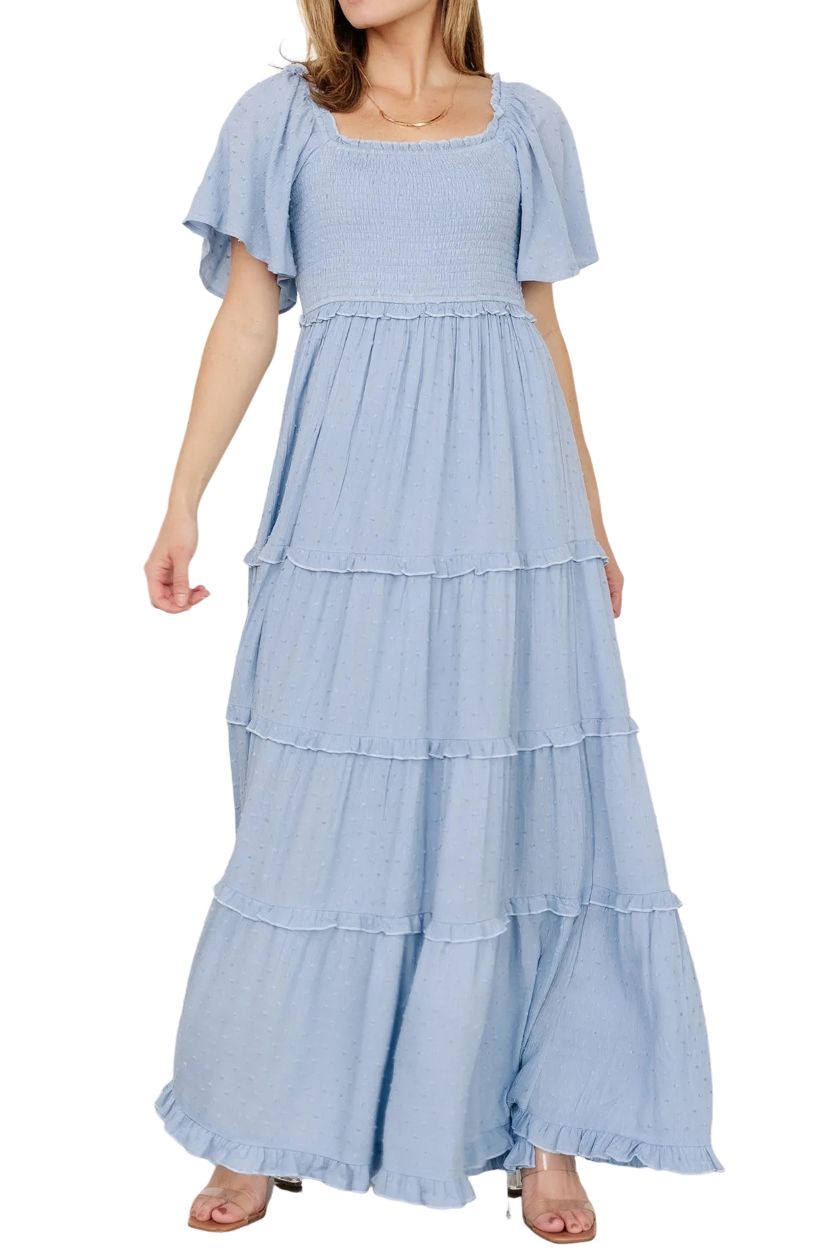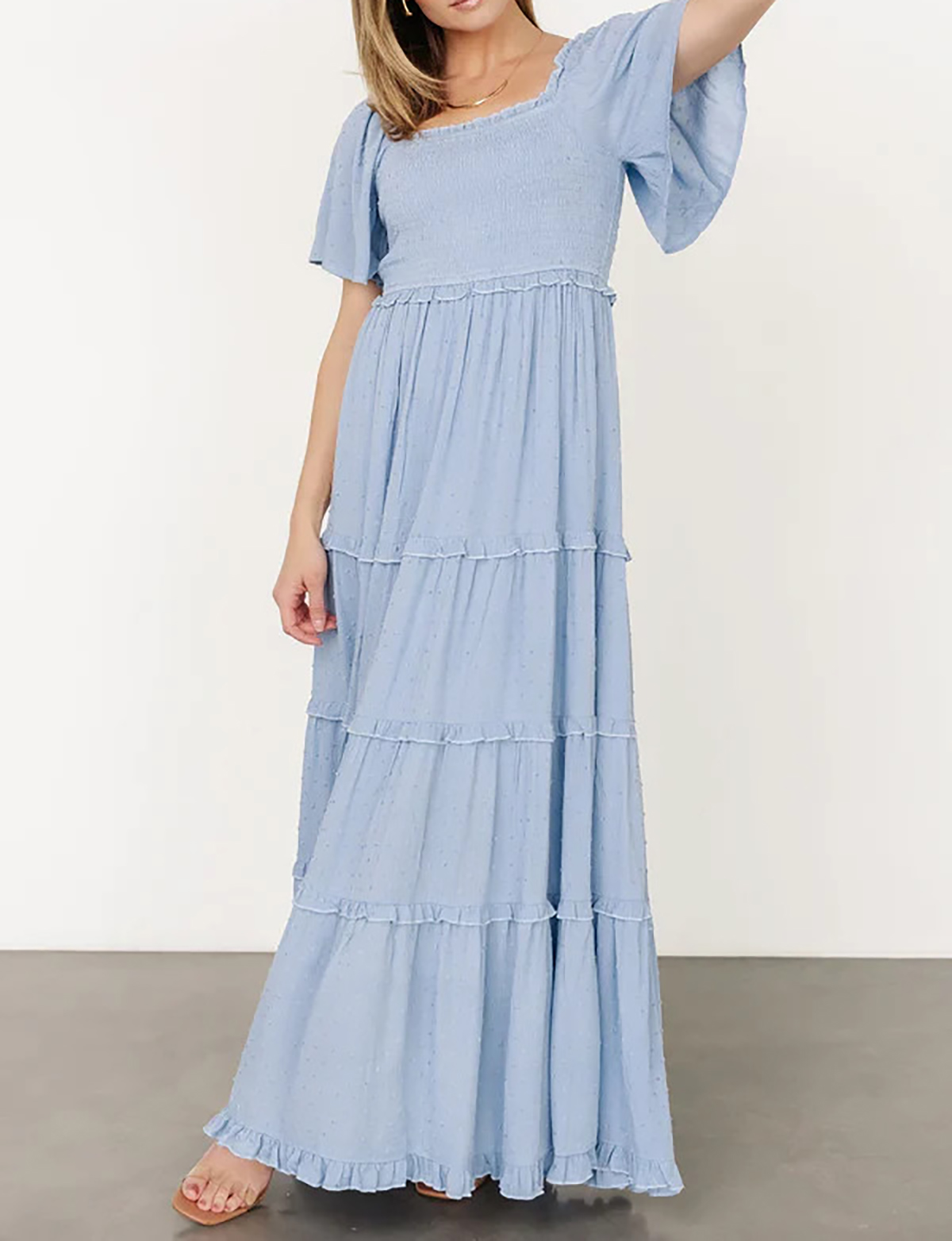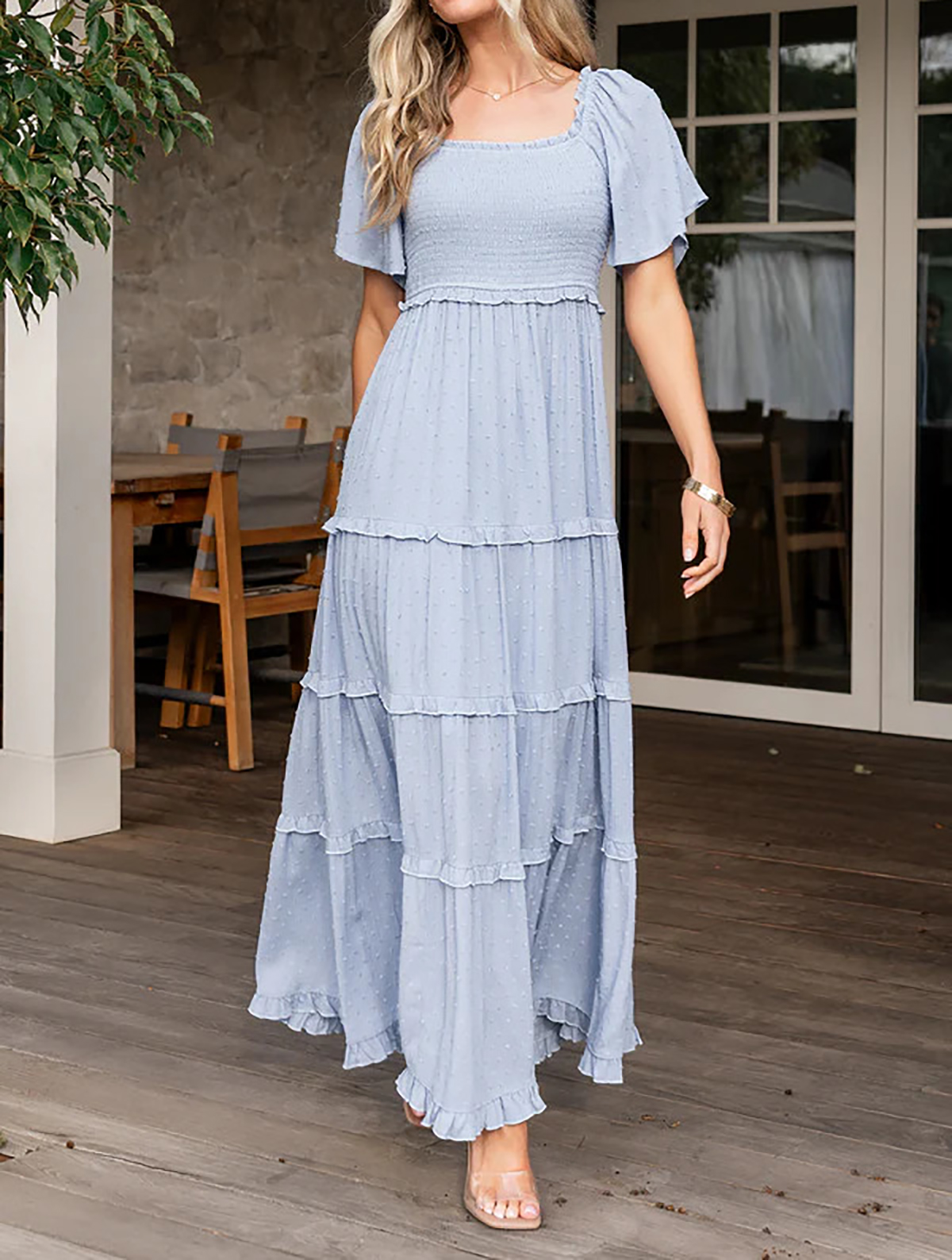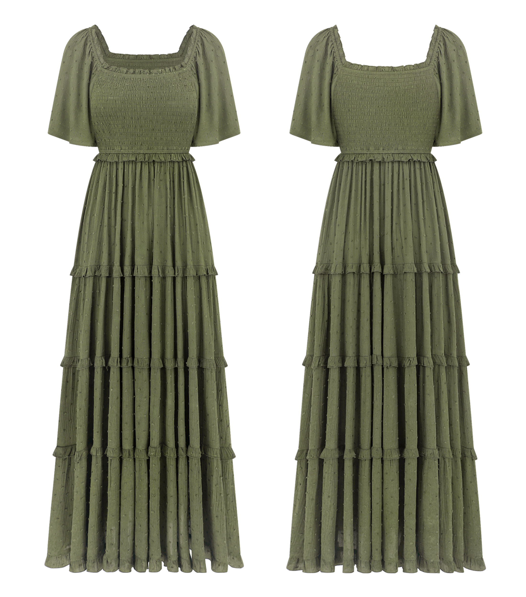 Why Choose R.Vivimos Womens Summer 2025 Maxi Dress Short Sleeve Square Neck Elastic Smocked Swiss Dots Casual A-Line Flowy Long Dresses?