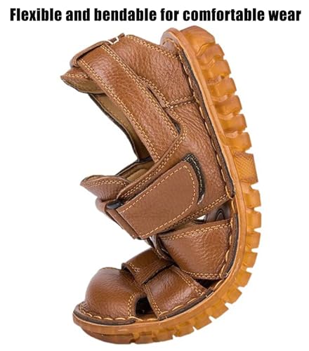 Men's Closed Toe Sandals Leather Business Sandals Beach Fisherman Sandals Walking Hiking Sandals 6