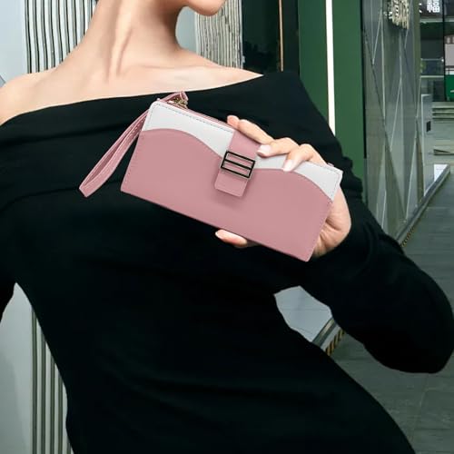 Womens Wallet, Large Capacity Bifold PU Leather Credit Card Holder Zipper Ladies Wallet with Multi Card Slots (Pink) 5