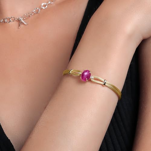 Item display length: 19 centimetersMaterial: GemstoneMetal type: Two tone sterling silverClasp type: Lobster ClawChain type: Wheat ChainMetal weight: 6.35 gElevate your style with this personalized bracelet featuring a stunning red created star ruby and shimmering lab-grown diamonds. The two-tone design, with 18K gold plating on silver, adds a touch of luxury and individuality to your look.Each red created star ruby is carefully selected and customized for you, making this bracelet a exceptional and meaningful piece. Paired with the brilliance of lab-grown diamonds, the combination creates a striking contrast that catches the light beautifully.Made in Italy, known for its fine craftsmanship and attention to detail in jewelry making, this bracelet exudes quality and sophistication. The intricate design and expert artistry ensure that you receive a piece that is not only exquisite but also well-crafted.Available in 6.5, 7, and 7.5-inch lengths, this bracelet offers a perfect fit for your wrist size. Whether you choose to wear it as a standalone statement piece or layered with other bracelets, this personalized creation is sure to make a lasting impression.USA Based Company and Lifetime Warranty: As a USA-based company, we prioritize quality, craftsmanship, and customer satisfaction. Our commitment to excellence ensures that you receive a meticulously crafted product that meets the highest standards of design and quality. Our jewelry passes extensive quality checkpoints before being shipped to you. Enjoy prompt and professional support from our world-class customer service team, ensuring your satisfaction.
