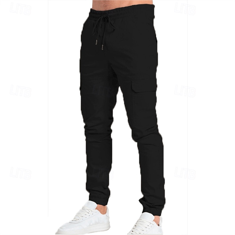 HOT ! Men's Cargo Pants Trousers Cargo Sweatpants Drawstring Elastic Waist Multi Pocket Plain Wearable Outdoor Daily Camping & Hiking Fashion Classic Black Army Green