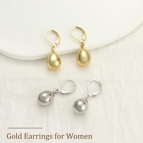 Gold/silver teardrop leverback earrings, 18K gold plated,hypoallergenic, teardrop leverback pendant earrings,earrings for women 6