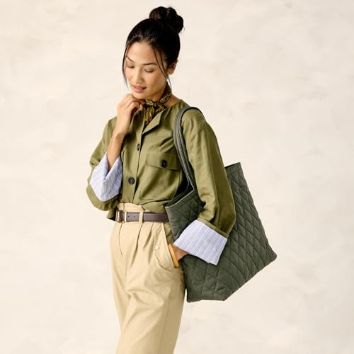 Fabric type: 100% PolyesterOrigin: ImportedPERFORMANCE TWILL - Work, workouts and weekends; you require polished, reliable styles that are easy to care for, and this fabric has just the right balance; this water-repellent fabric wipes clean and features heritage quiltingSIZE - This style measures 16 inches high, 15 inches wide, and 5 inches deep; features a 10 inch handle dropDETAILS - Exterior includes a slip pocket; interior features two slip pockets and a zip pocket; zip closure; water-repellentCARE - Spot clean with mild detergent and a tender, damp cloth, rinse thoroughly; lay flat to dry Perfect for everyday use. superior materials and excellent craftsmanship ensure long-lasting durability.