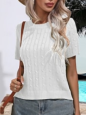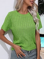 More information about Women's Sweater Casual Soft Pure Color Ribbed Crew Neck Knitted Short Sleeves Regular Tops Knit Daily Weekend White Green Summer Spring