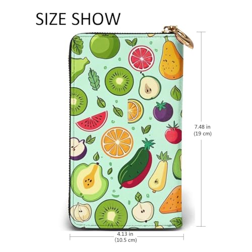 Women's Long Cash Wallet, PU Leather Elegant Clutch Change Purses with Zipper, Travel, Gifts (Fresh Fruits and Vegetables Print)