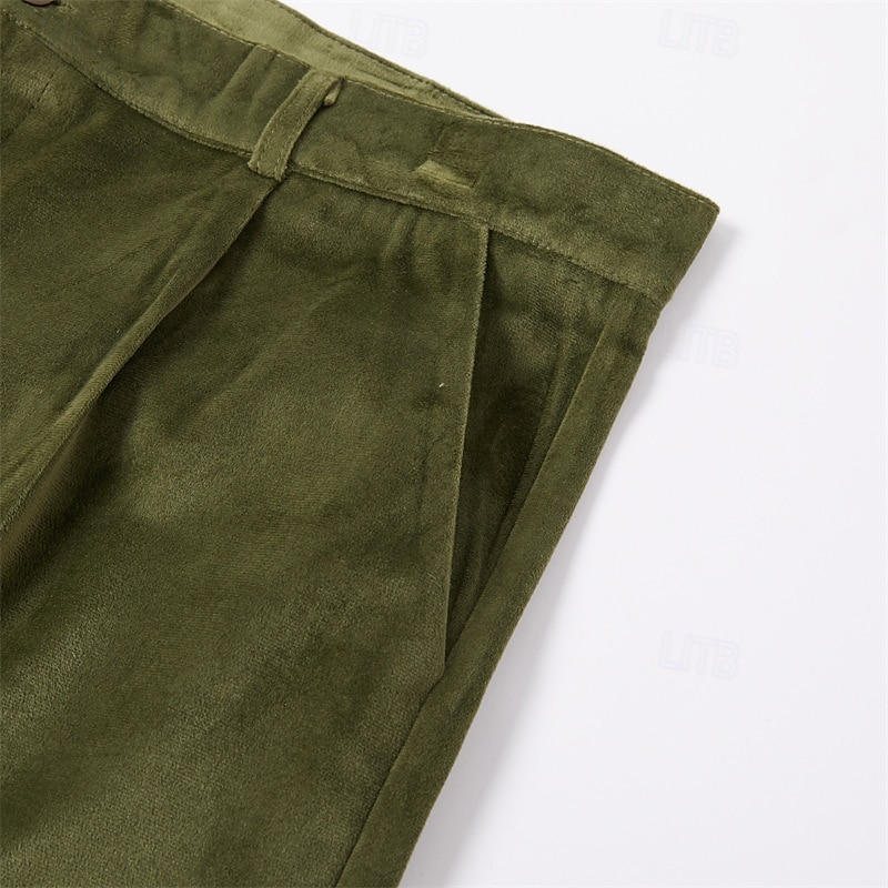 More information about Men's Dress Pants Trousers Casual Pants Velvet Pants Front Pocket Straight Leg Plain Comfort Business Daily Holiday Fashion Chic & Modern ArmyGreen Wine