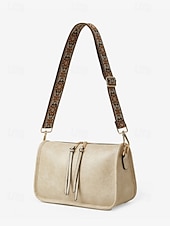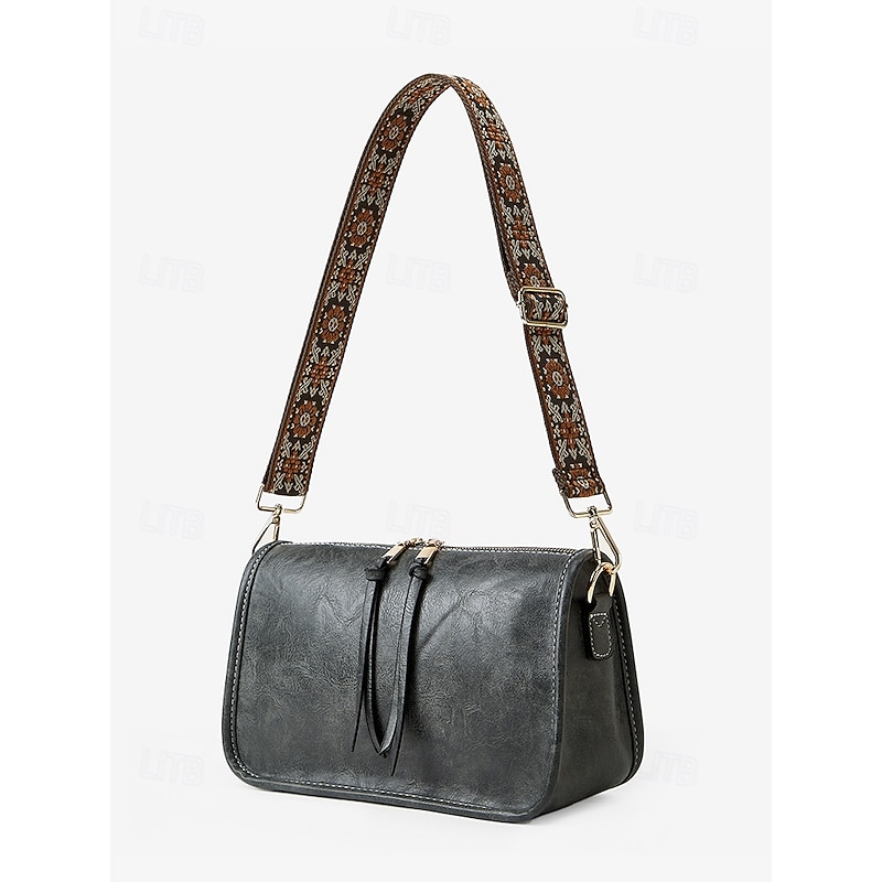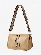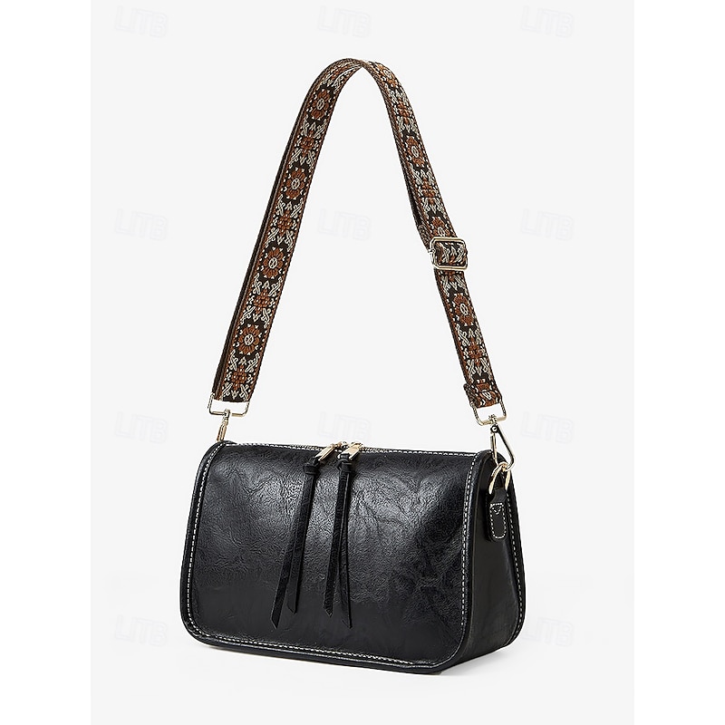 HOT ! Women's Brown Faux Leather Shoulder Bag with Adjustable Patterned Strap - Stylish Crossbody Purse for Casual and Boho Chic Looks