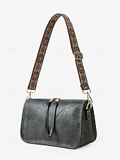 More information about Women's Brown Faux Leather Shoulder Bag with Adjustable Patterned Strap - Stylish Crossbody Purse for Casual and Boho Chic Looks