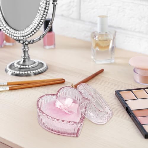 Large Body Powder Puff Container, Pink Heart Crystal Powder Container, Reusable Dusting Powder Case, Body Puff Glass Jar, Puff not Including 2