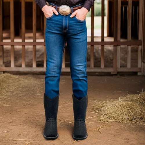 • DESIGN: Men’s Leather Western Boot |Embossed Crocodile Print Design | Mid-Calf | Square Toe
