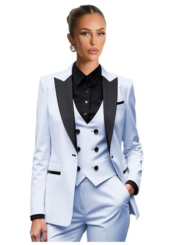 Formal Suits for Women 3 Piece Double Breasted Womens Suit Business Casual Peak Lapel Pant Suits for Women