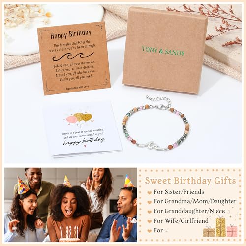 • 【 Gifts for Women Birthday Unique 】 Honor the special woman in your life with this thoughtful wave bracelet. Featuring a graceful wave charm and elegant earth-tone beads, it’s designed to celebrate her personal journey. More than a pretty accessory, this wearable inspiration accompanies her through life's adventures - the perfect way to say "Happy Birthday, you've weathered every storm!" Great as best friend birthday gifts for women.