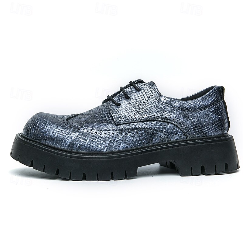 Men's Brown Brogue Shoes with Chunky Sole, Casual Faux Leather Lace-Up Sneakers with Textured Detailing, Perfect for Outdoor and Everyday Wear 22