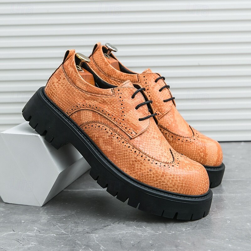 Men's Brown Brogue Shoes with Chunky Sole, Casual Faux Leather Lace-Up Sneakers with Textured Detailing, Perfect for Outdoor and Everyday Wear 19