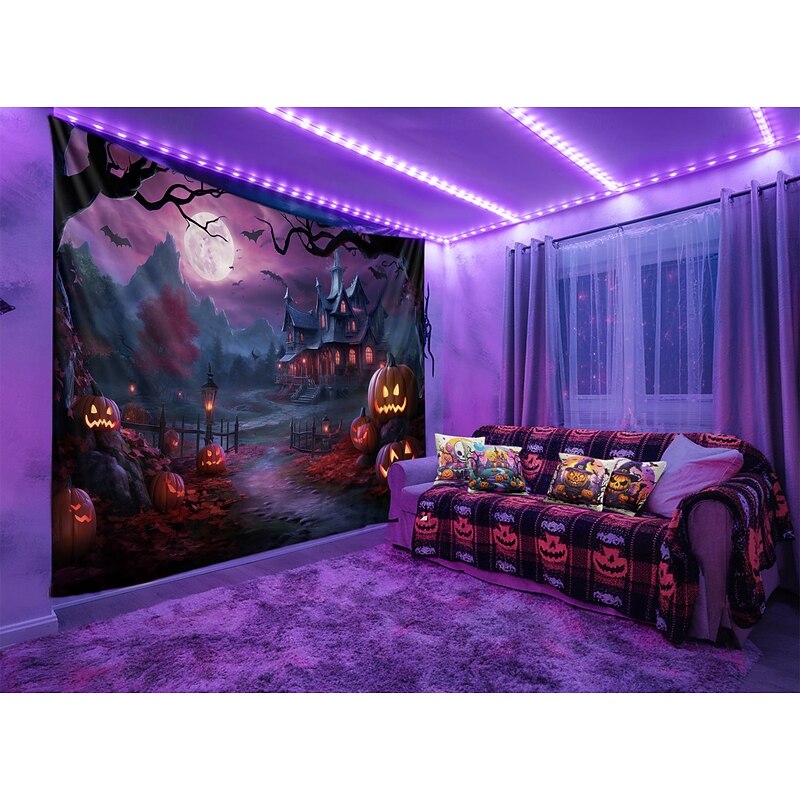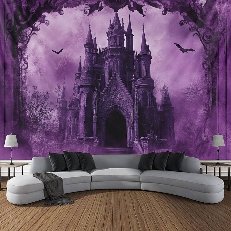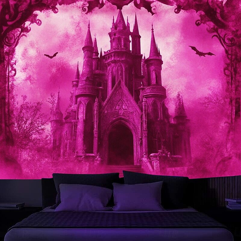 Halloween Decorations Blacklight Tapestry Glow Party Creepy Mansion Castle UV Reactive Glow in the Dark Psychedelic Trippy Misty Hanging Tapestry Wall Art Mural for Living Room Bedroom