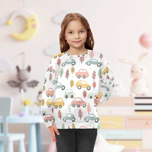 JUNZAN Colorful Cartoon Cars Little Girls Hooded Sweatshirt Crewneck Sweatshirts for Boys Camping 4T 5
