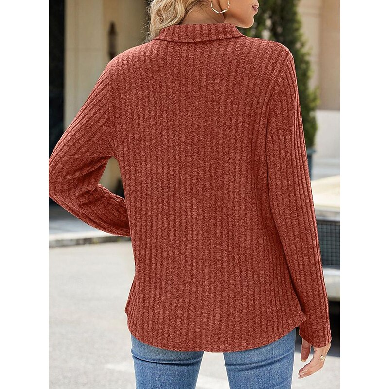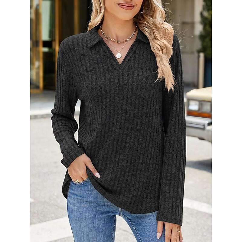 More information about Women's T Shirt Casual Solid Color Long Sleeve Long Tops Shirt Collar Daily Black Wine Blue Khaki Spring Fall